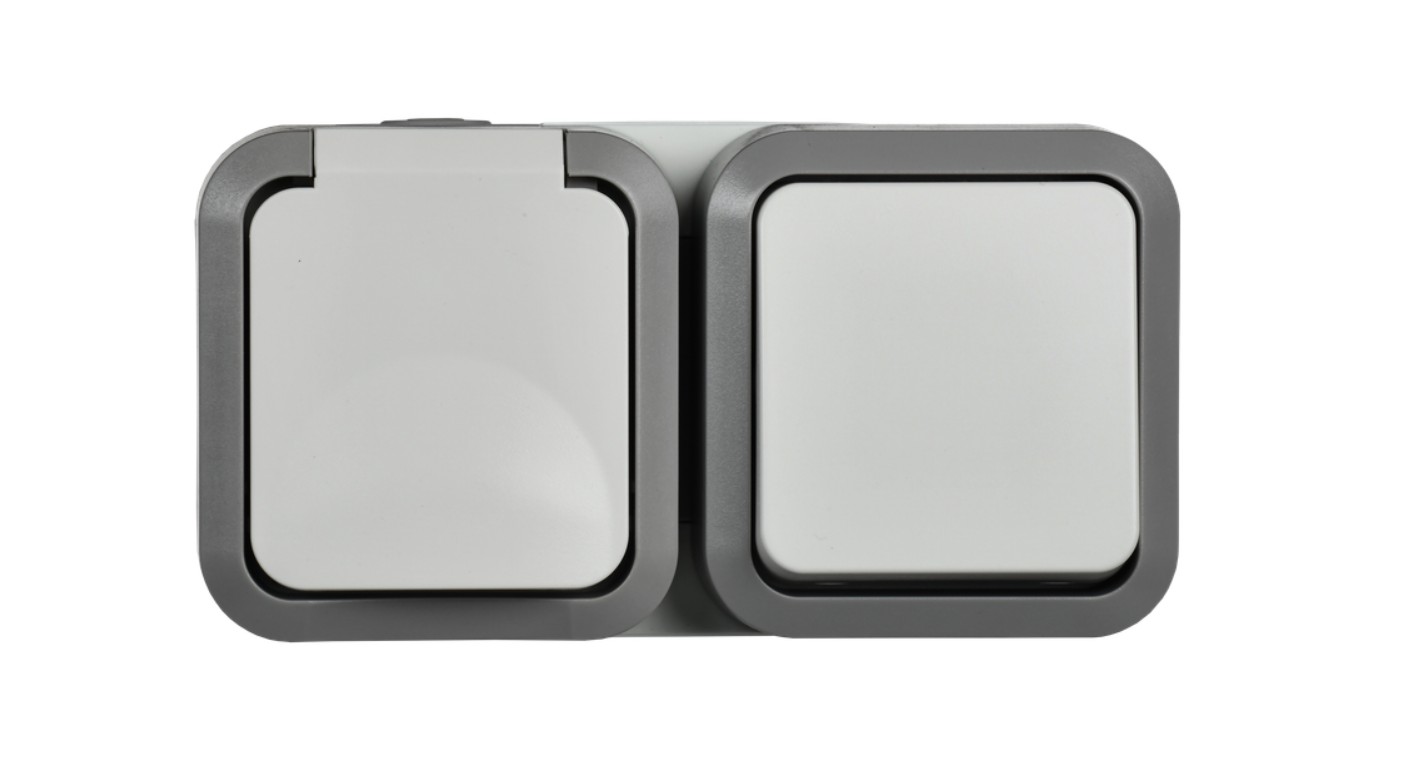 TORS Блок розетка + выключатель горизонтальный 16А IP55 TS242 серо-белый ИЭК