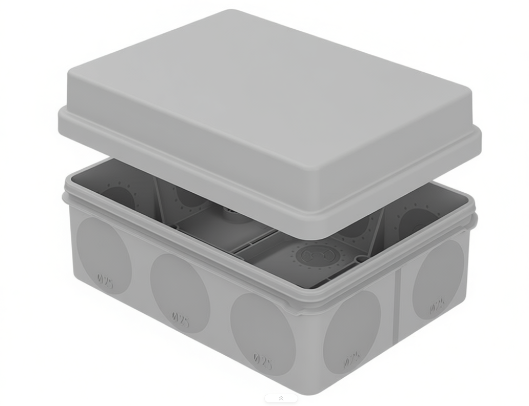 Наличие уплотнителя в месте крепления крышки предотвращает проникновение пыли, грязи и влаги внутрь коробки, обеспечивая дополнительную защиту электрических соединений.