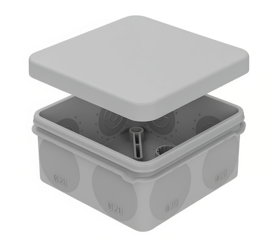 Наличие уплотнителя в месте крепления крышки предотвращает проникновение пыли, грязи и влаги внутрь коробки, обеспечивая дополнительную защиту электрических соединений. Распаячная коробка изготовлена из материалов, не содержащих галогены, что делает ее экологически безопасной. Оснащена герметичными отверстиями для крепления.