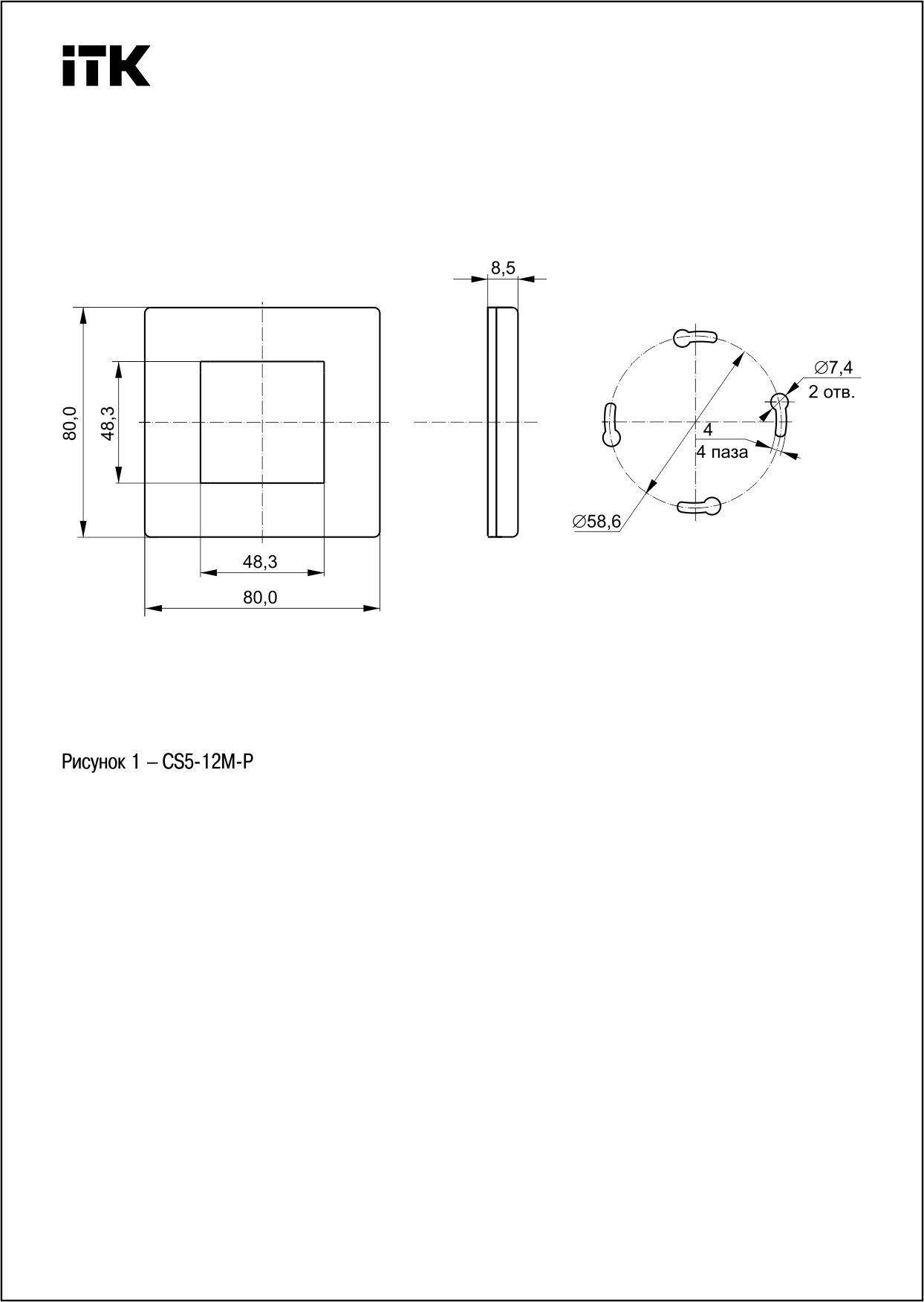 ITK Лицевая рамка для модуля Mosaic 80х80мм пластиковый суппорт белая
