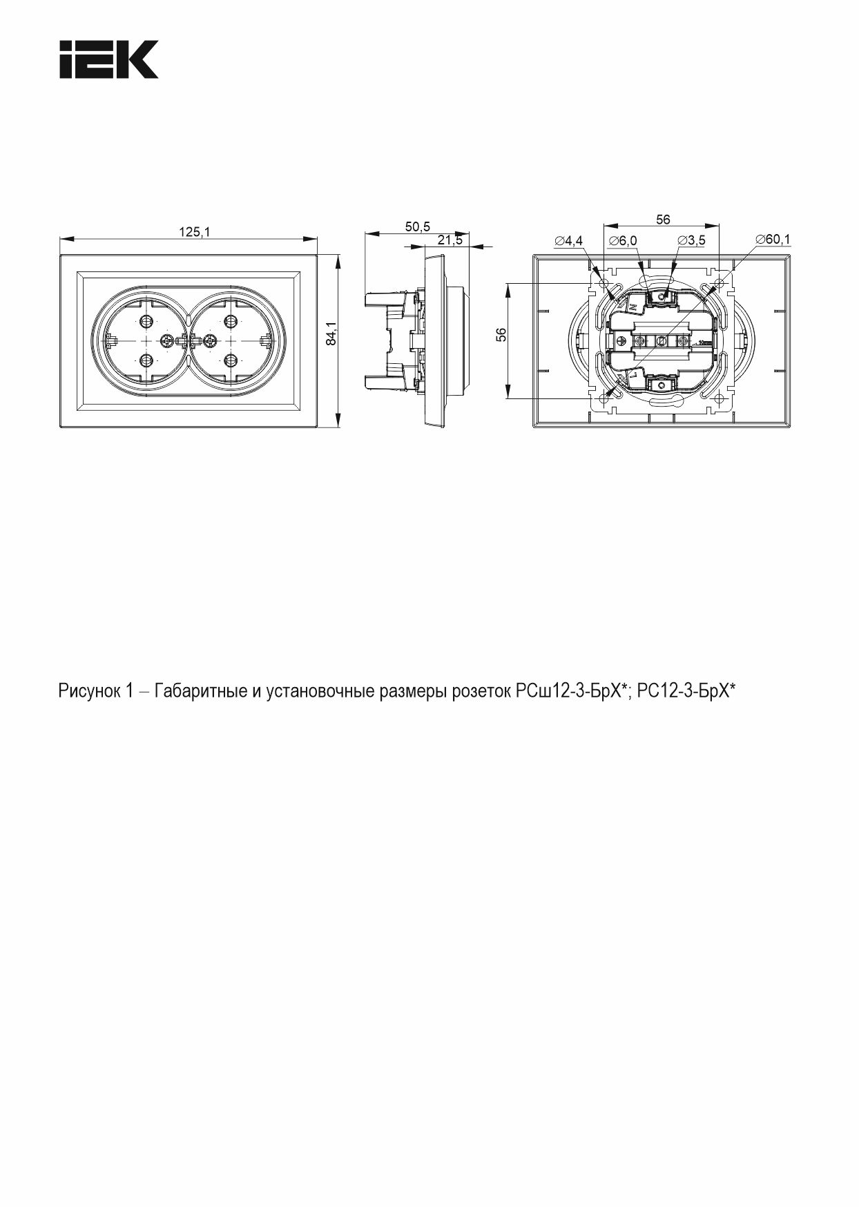 Розетка 2-местная с заземляющим контактом без защитных шторок 16А в сборе РС12-3-БрБ белая BRITE ИЭК