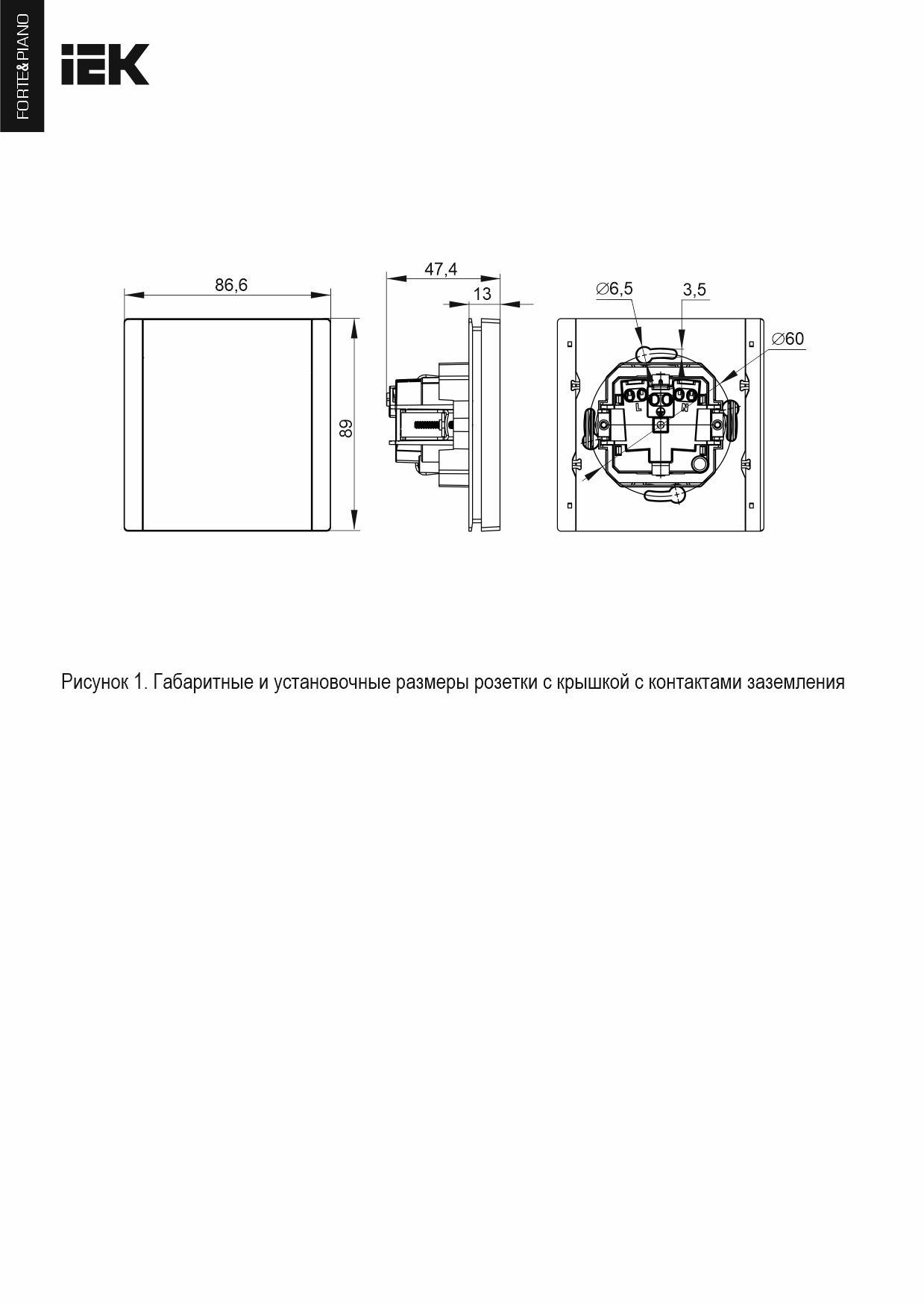 FORTE&PIANO Розетка 1-местная с заземлением со шторками винтовое крепление 16А FP221 белый ИЭК