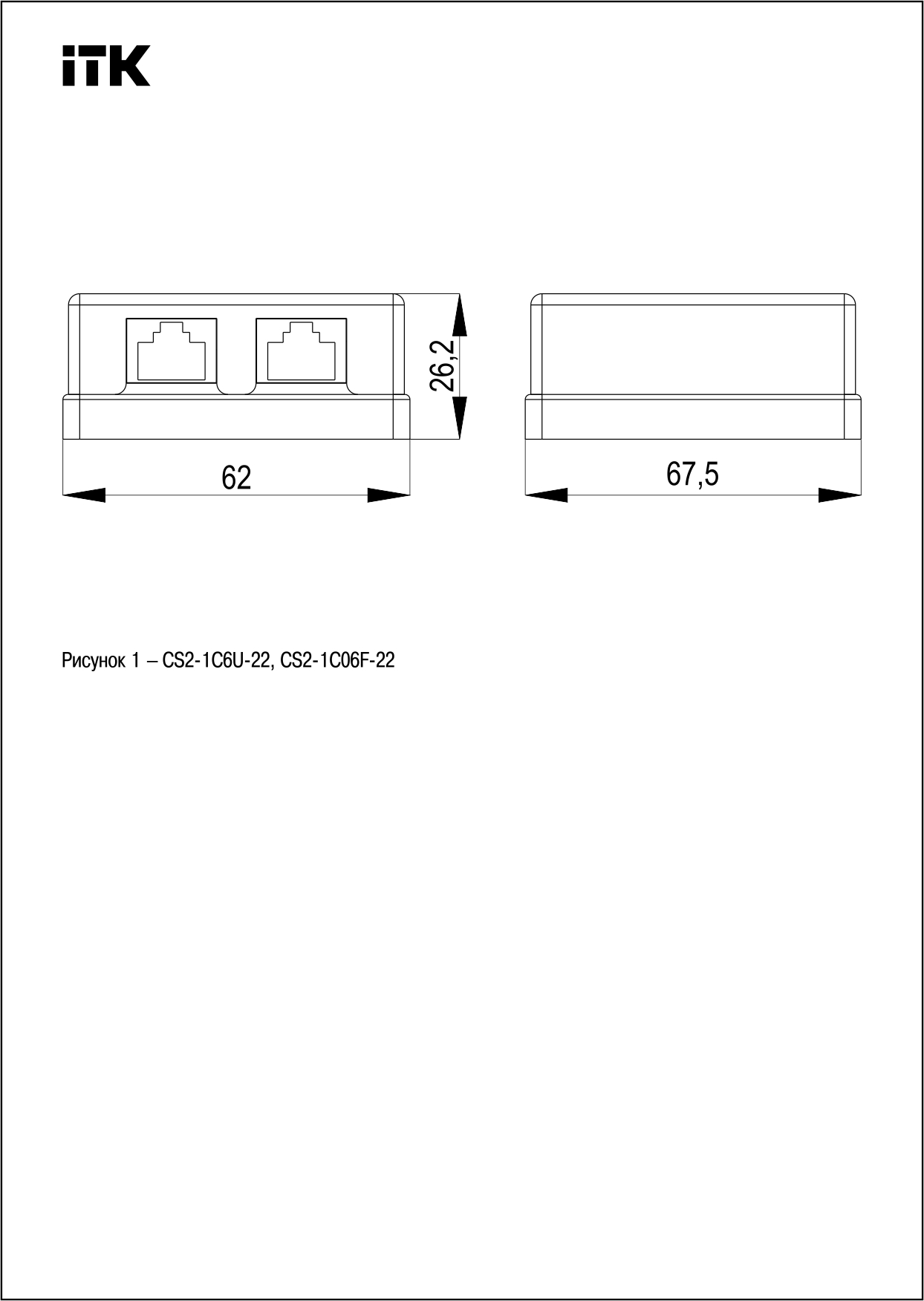 ITK Настенная информационная розетка RJ-45 кат.6 2-порта