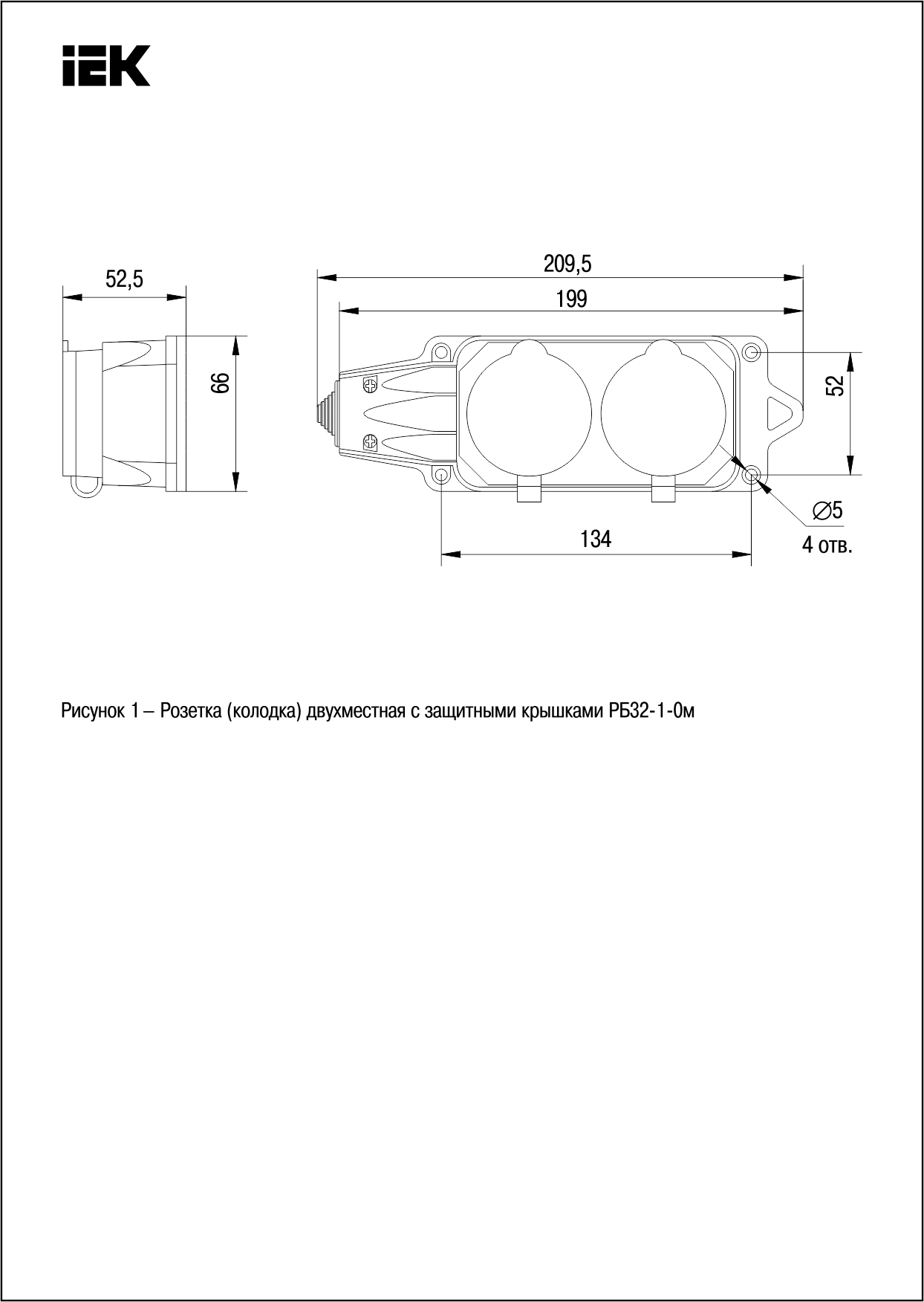 Розетка (колодка) 2-местная РБ32-1-0м с защитными крышками IP44 ОМЕГА каучук IEK