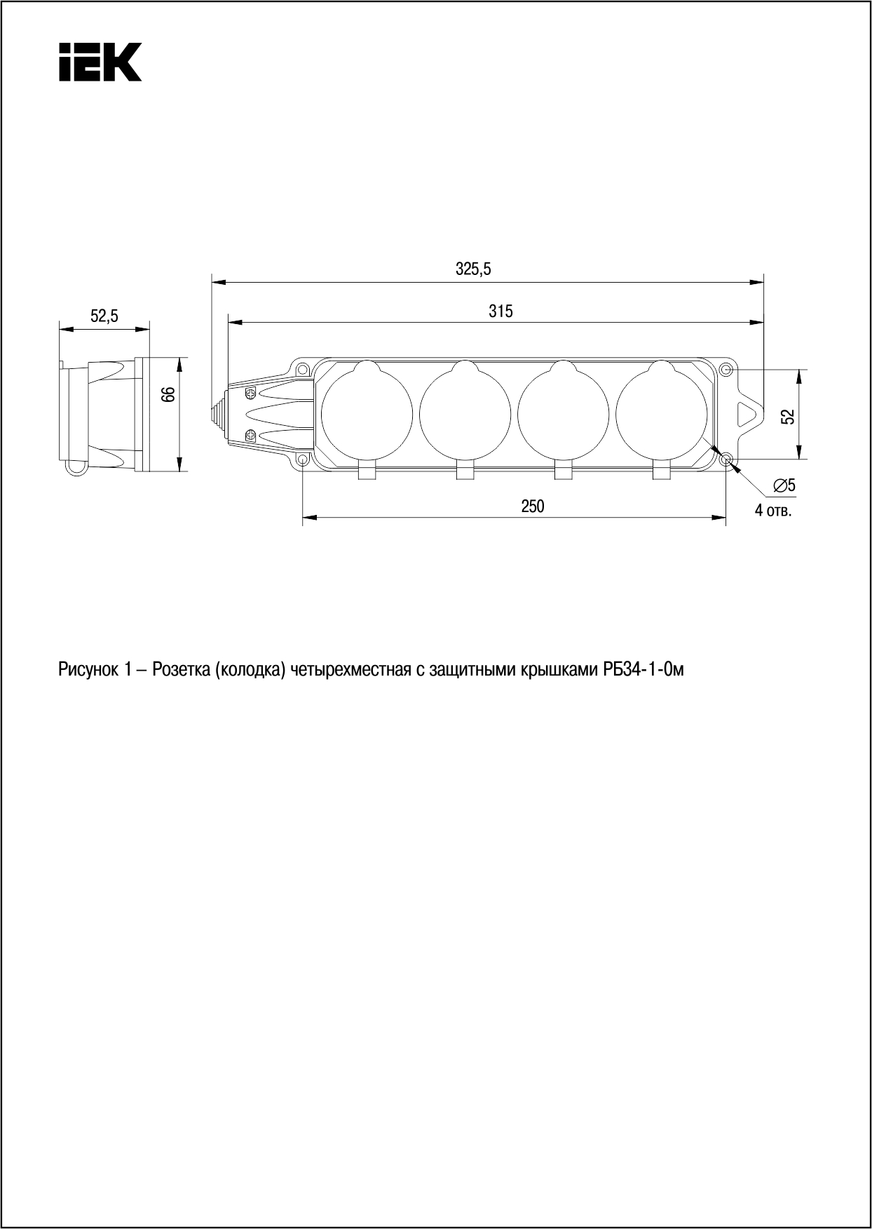 Розетка (колодка) 4-местная РБ34-1-0м с защитными крышками IP44 ОМЕГА каучук IEK