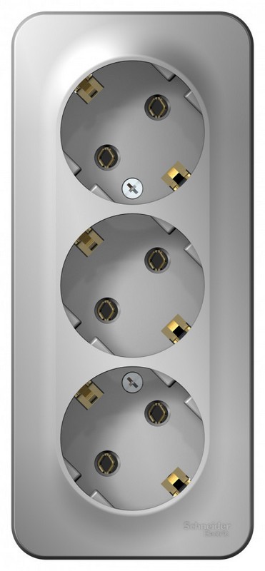 Розетка тройная с заземляющим контактом без шторок с изолирующей пластиной Алюминий, /BLNRA010313/