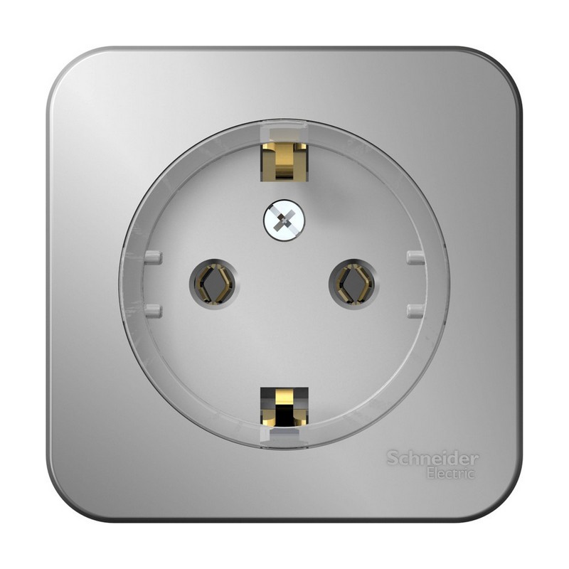 Розетка с заземляющим контактом без шторок (компакт) с изолирующей пластиной Алюминий, /BLNRA110113/