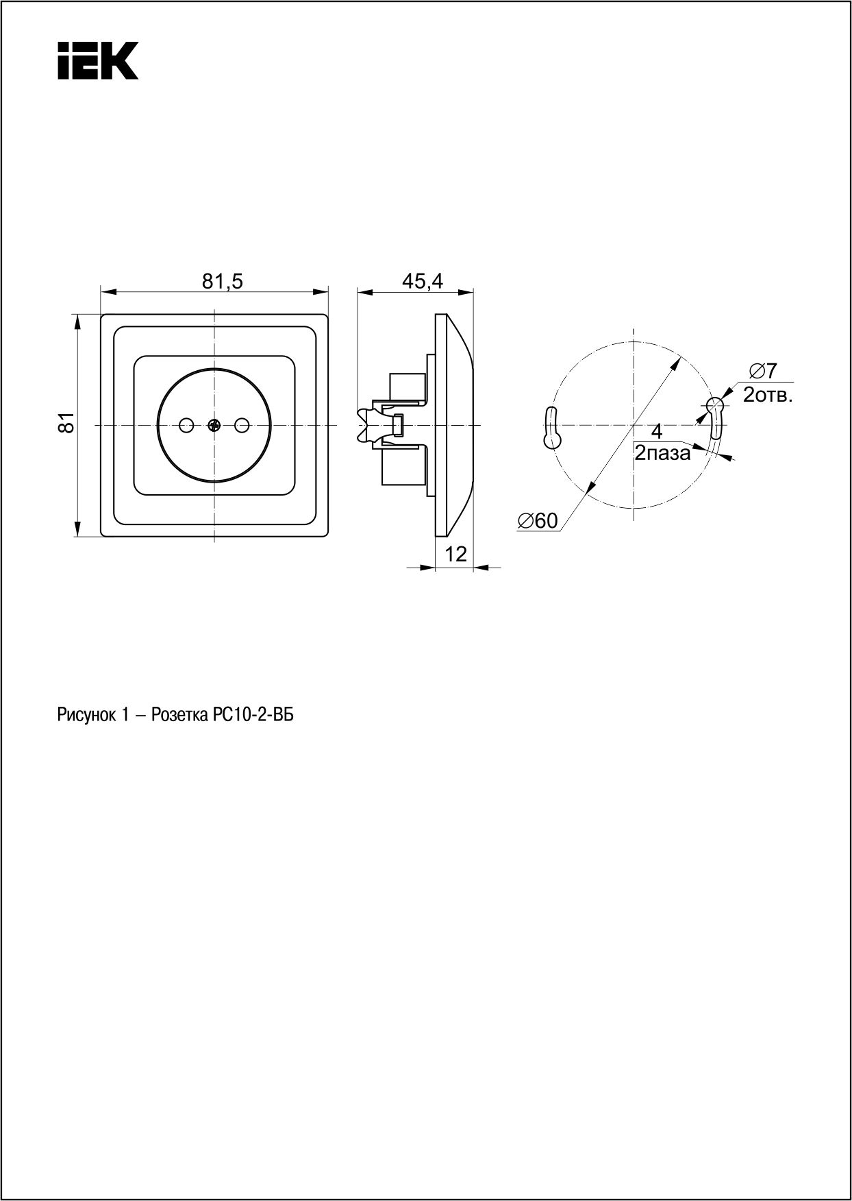 Розетка 1-местная РС 10-2-ВБ без заземляющего контакта без защитных шторок 10А ВЕГА (белый) ИЭК