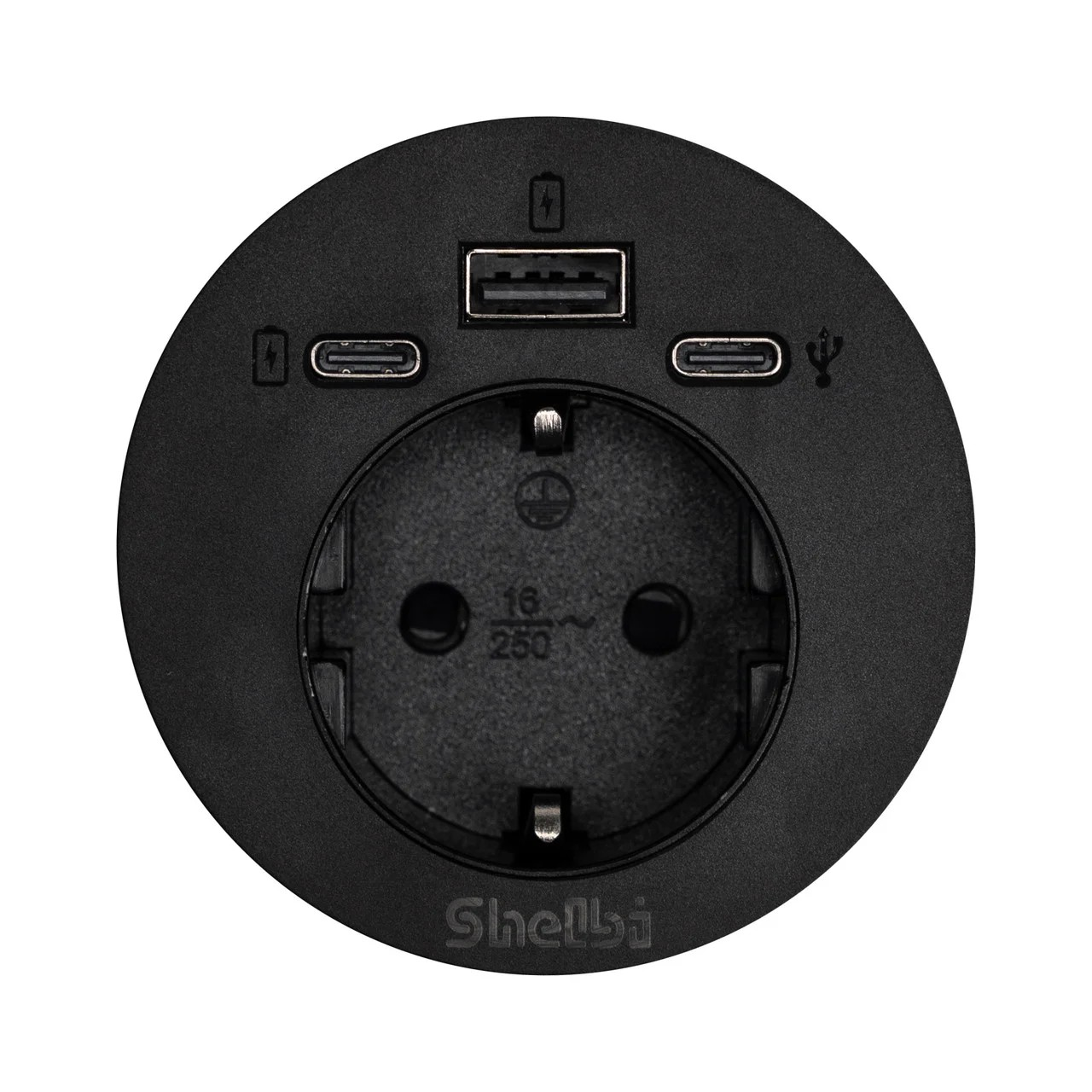 Розеточный блок настольный, 1 розетка 220В, 1 USB, 2 Type-C, черный Shelbi STV-1S-1U-2C-B
