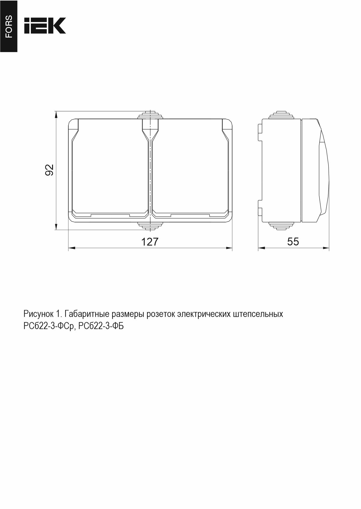 Розетка 2-местная РСб22-3-ФСр с заземляющим контактом для открытой установки ФОРС IP54 ИЭК