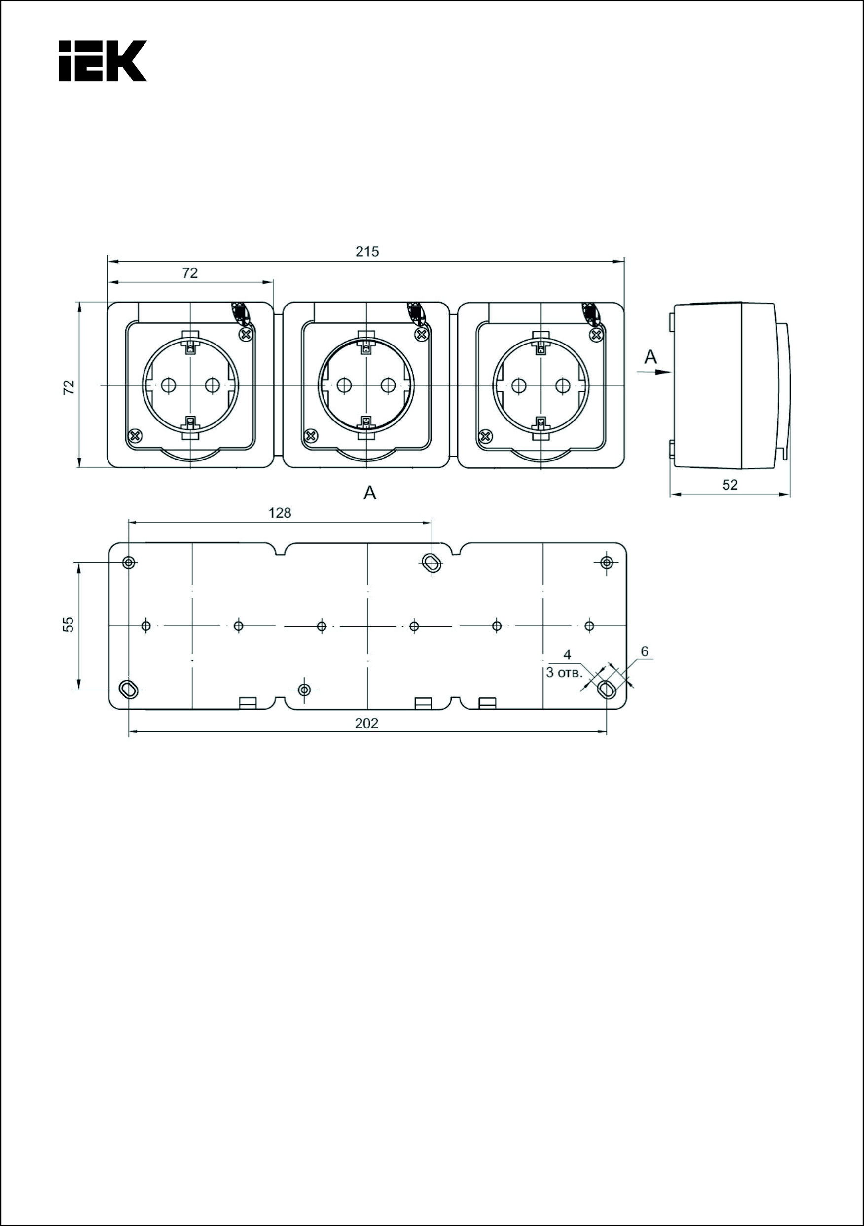Розетка 3-местная для открытой установки РСб23-3-ГПБд с заземляющим контактом IP54 ГЕРМЕС PLUS (цвет крышки: дымчатый) ИЭК