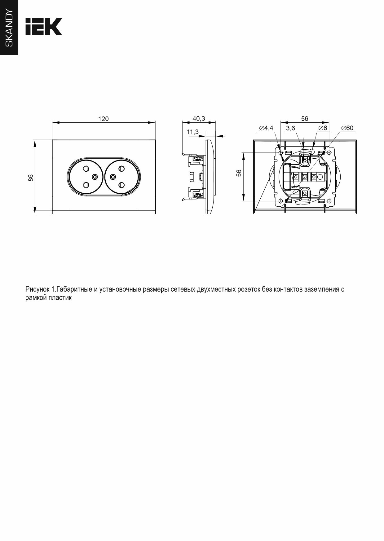 SKANDY Розетка 2-местная без заземления с защитными шторками 10А в сборе SK-R09B бежевый IEK