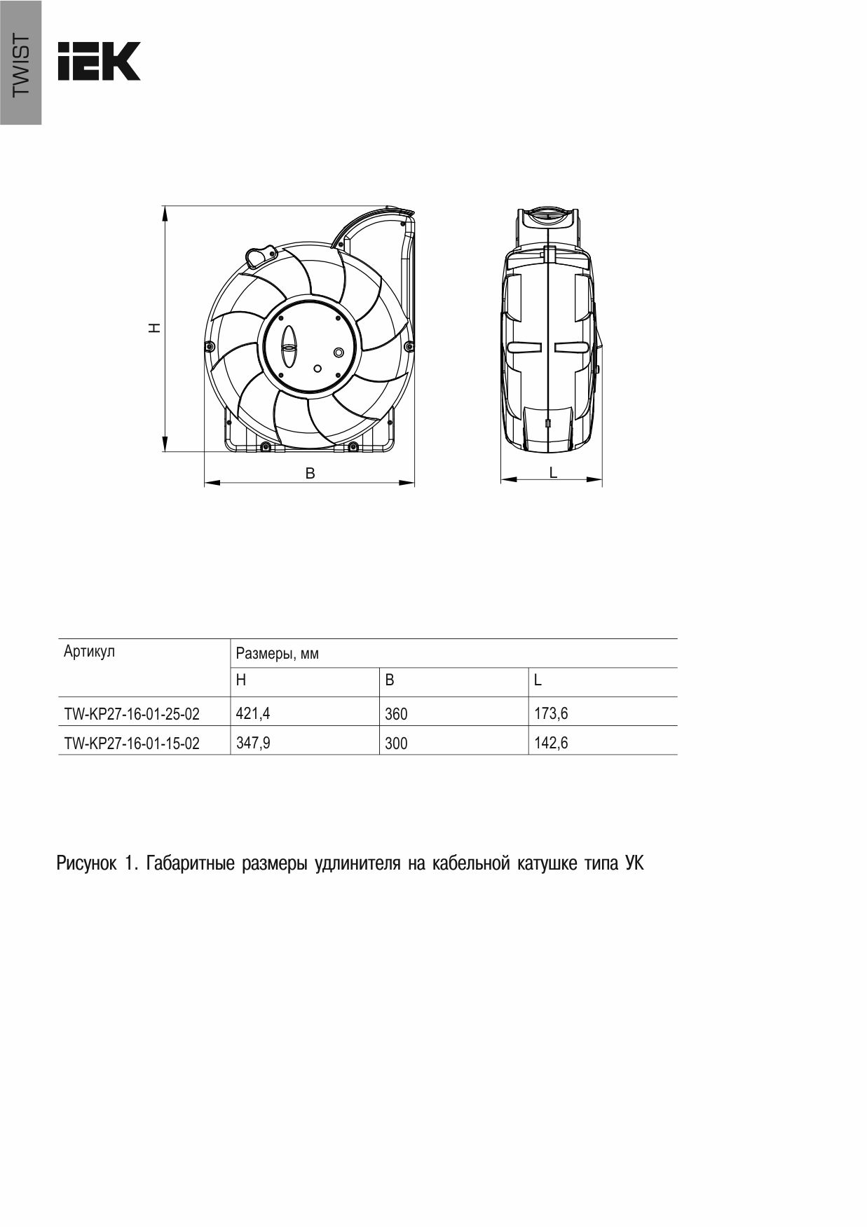 TWIST Катушка УК25 1 место с заземлением 3х1,5мм2 с автосмоткой кабеля 25м+2м IEK