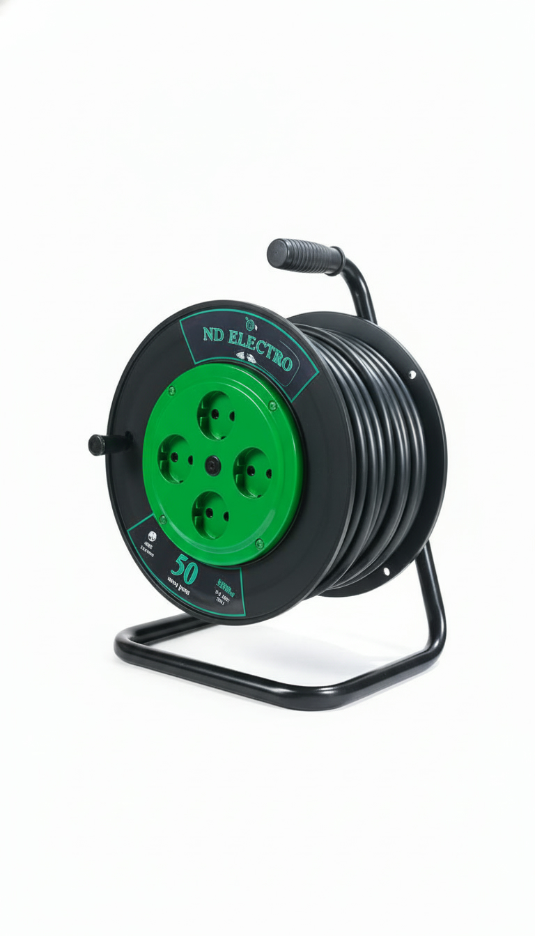 Удлинитель на катушке ND Electro 2×2,5 мм², длиной 50 м, предназначен для безопасного и удобного подключения электроинструмента и бытовых приборов к сети. Изделие обеспечивает надёжное питание на расстоянии, упрощает хранение кабеля благодаря катушке и позволяет минимизировать риск перегрева проводов при правильной эксплуатации.
