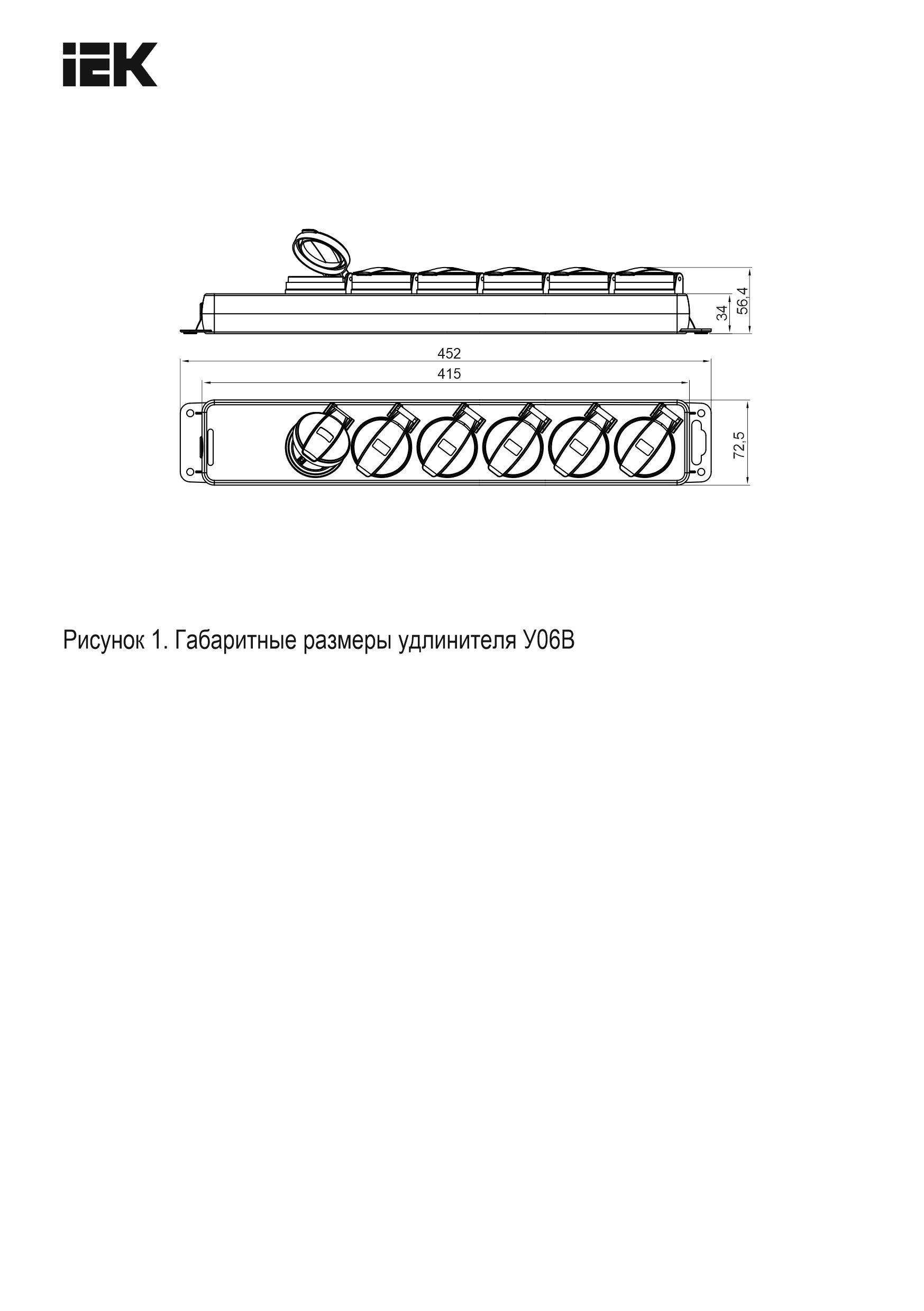 Удлинитель У06В 6 места с защитными крышками IP44 с заземлением 3х1мм2 16А/250В 5м IEK