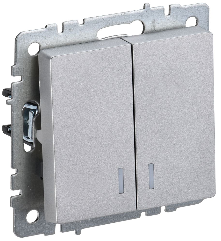 BRITE Выключатель 2-клавишный с индикацией 10А ВС10-2-1-БрА алюминий ИЭК