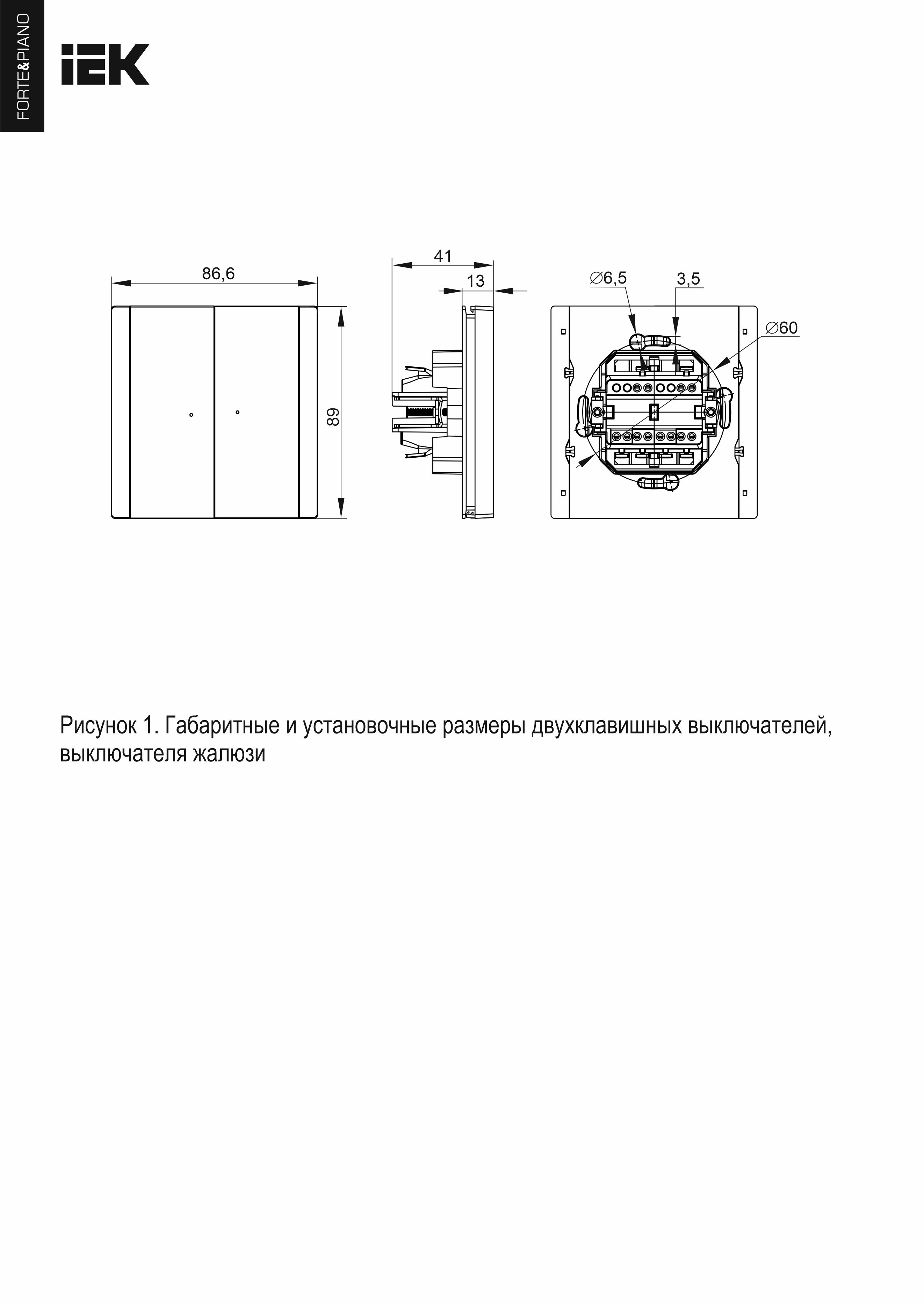 FORTE&PIANO Выключатель 2-клавишный с индикацией 10А FP106 черный IEK