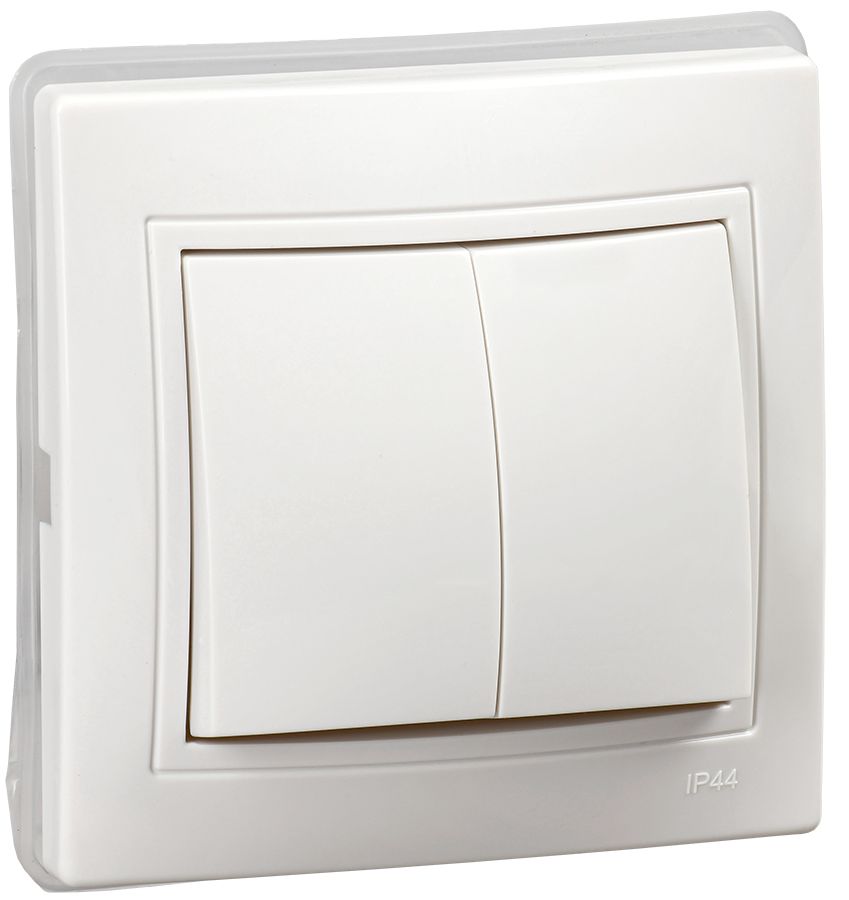 KVARTA Выключатель 2-клавишный 10А IP44 ВС10-2-0-КБ-44 белый IEK