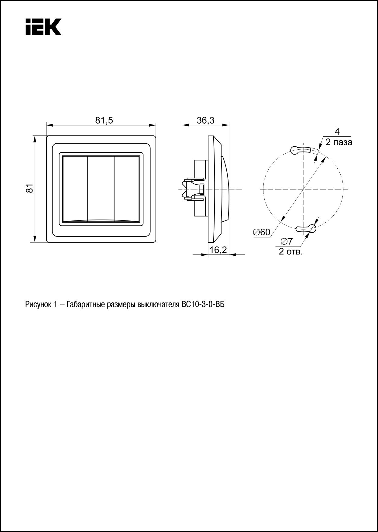Выключатель 3-клавишный ВС10-3-0-ВБ 10А ВЕГА белый ИЭК