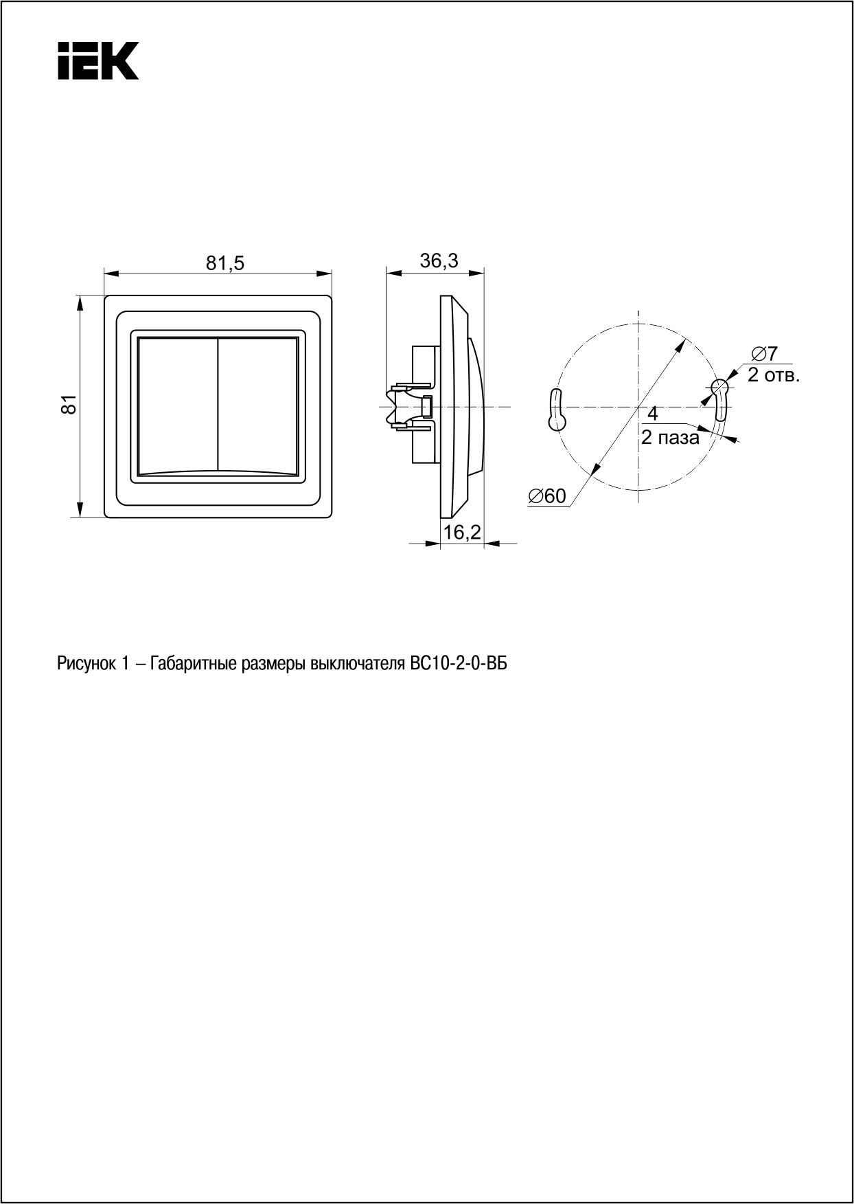 Выключатель 2-клавишный ВС10-2-0-ВБ 10А ВЕГА (белый) ИЭК