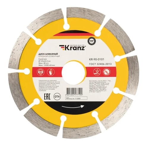 Диск алмазный отрезной сегментный 125x22,2x1,8x10мм KRANZ и другие товары категории Диски для резки доступны в каталоге интернет-магазина 220volt по цене 1 747.00 ₸. Товар может находиться на складах в Астане, Алматы, Караганде, Шымкенте или Актобе. Уточняйте наличие перед оформлением заказа.