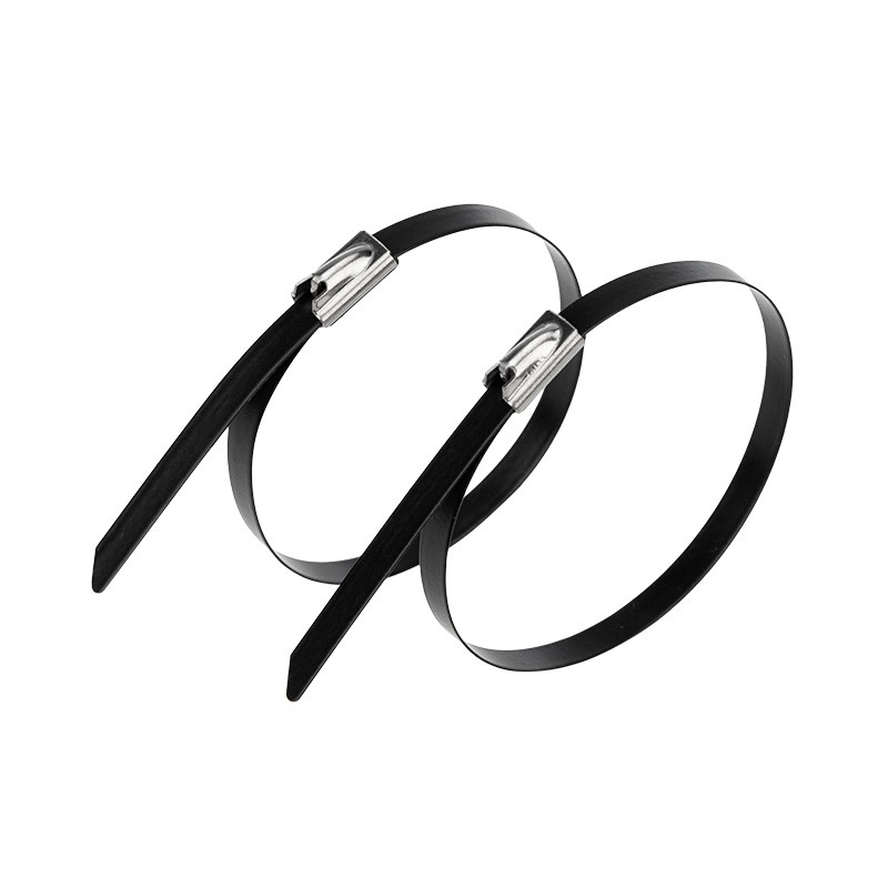 Хомуты изготовлены из нержавеющей стали AISI 304. Полимерное покрытие увеличивает антикоррозионную стойкость, сглаживает края стяжки и создает изолирующий слой, препятствующий химической коррозии между неоднородными металлами. Благодаря полимерному слою изделие обладает пластичностью, не трескается и сохраняет гибкость даже при отрицательных температурах.