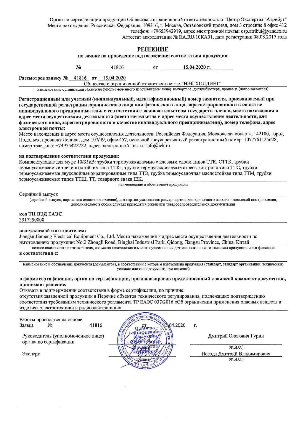 Наличие на трубках черного цвета маркировки с указанием диаметров до и после усадки.