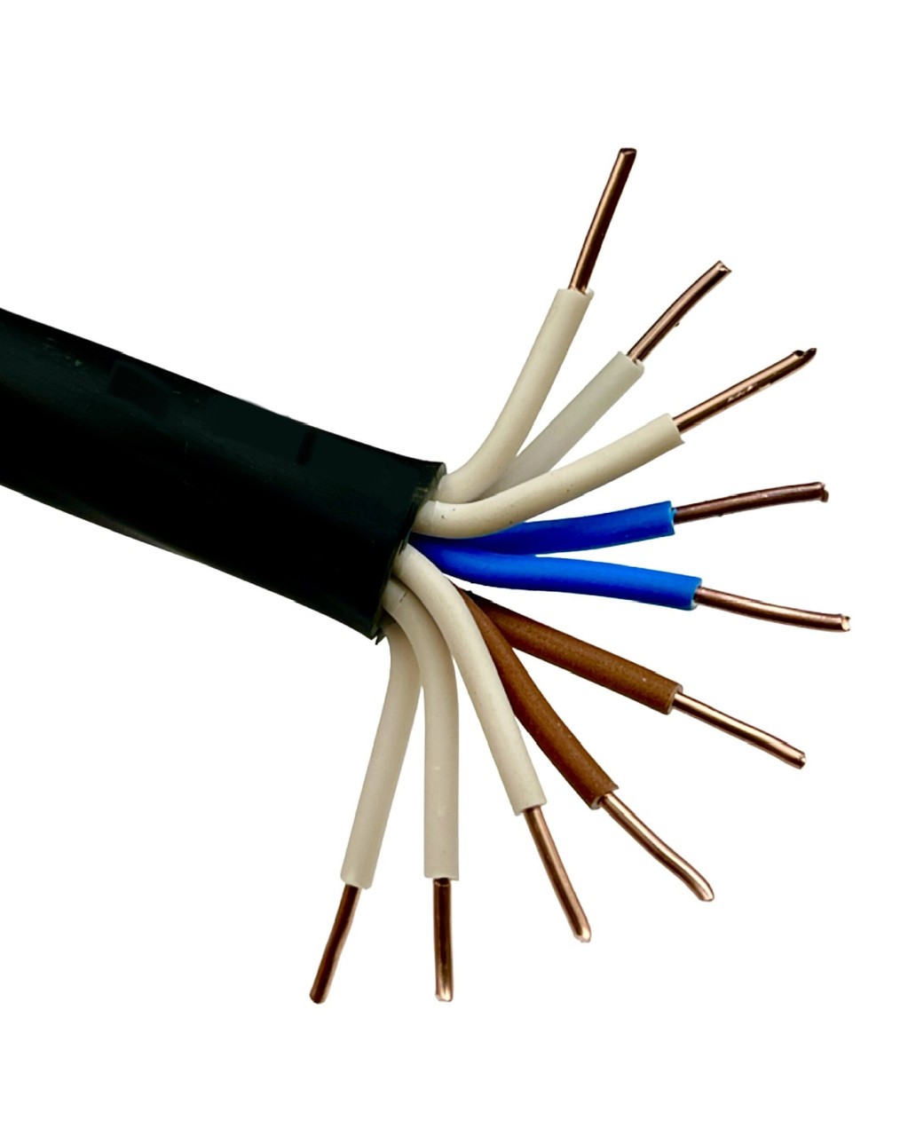 Кабель КВВГ 10*1,5 КЭК — контрольный медный кабель с десятью жилами сечением 1,5 мм², предназначенный для передачи сигналов управления и подключения электрических устройств в стационарных установках. Оснащен изоляцией и оболочкой из ПВХ-пластиката, что обеспечивает надежность и устойчивость к внешним воздействиям.