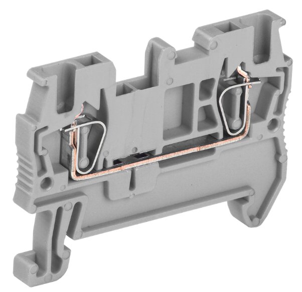 Клемма устанавливается на DIN-рейку и позволяет подключать проводники как с наконечниками, так и без предварительной подготовки. Изоляционный корпус выполнен из эластичного и ударопрочного огнестойкого полиамида, устойчивого к воздействию агрессивных сред и температурных перепадов. Пружинная система обеспечивает газонепроницаемое соединение с высокой вибростойкостью и долговечностью.