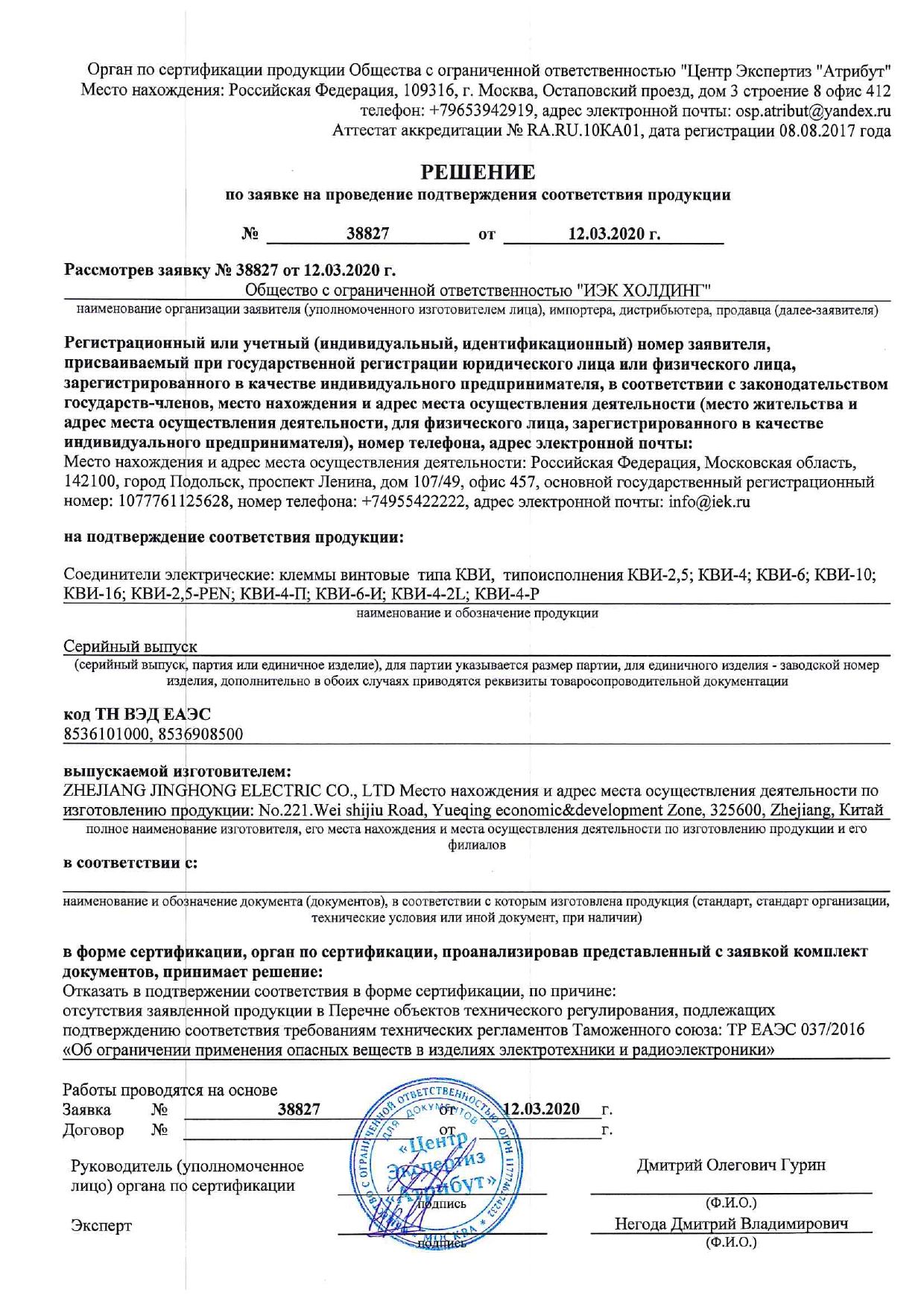 клемма вводная силовая
