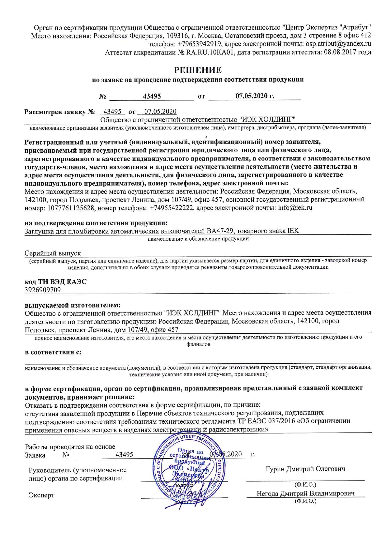 Заглушка для пломбировки ВА47-29 ИЭК