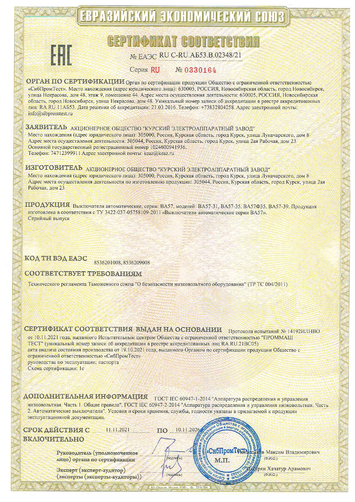 Автомат ВА 5735-340010-80А-800-690АС-УХЛ3-КЭАЗ