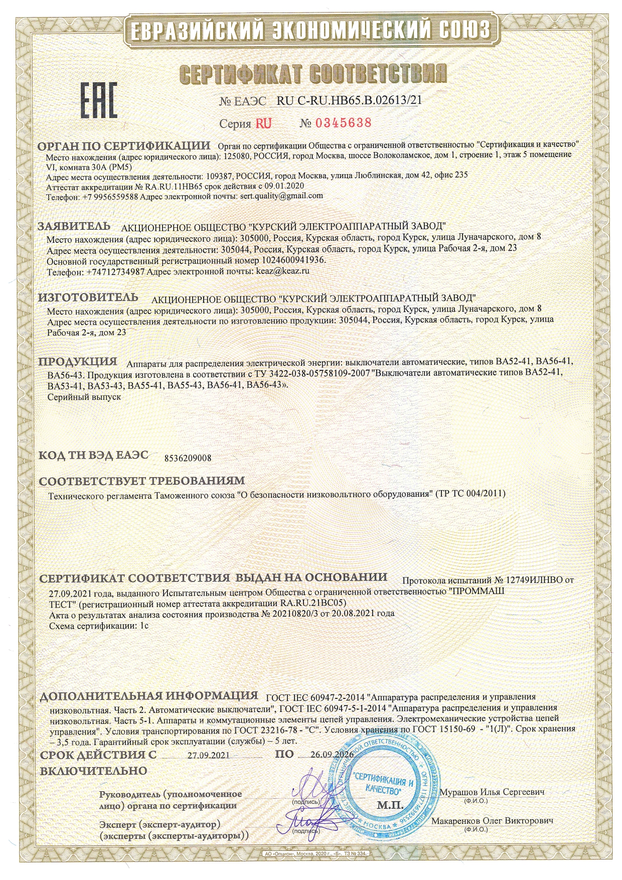 Автомат ВА55-41-334770-1000А-690AC-НР230AC/220DC-ПЭ230AC-УХЛ3-КЭАЗ и другие товары категории Автоматические выключатели доступны в каталоге интернет-магазина 220volt по цене 0.00 ₸. Товар может находиться на складах в Астане, Алматы, Караганде, Шымкенте или Актобе. Уточняйте наличие перед оформлением заказа.