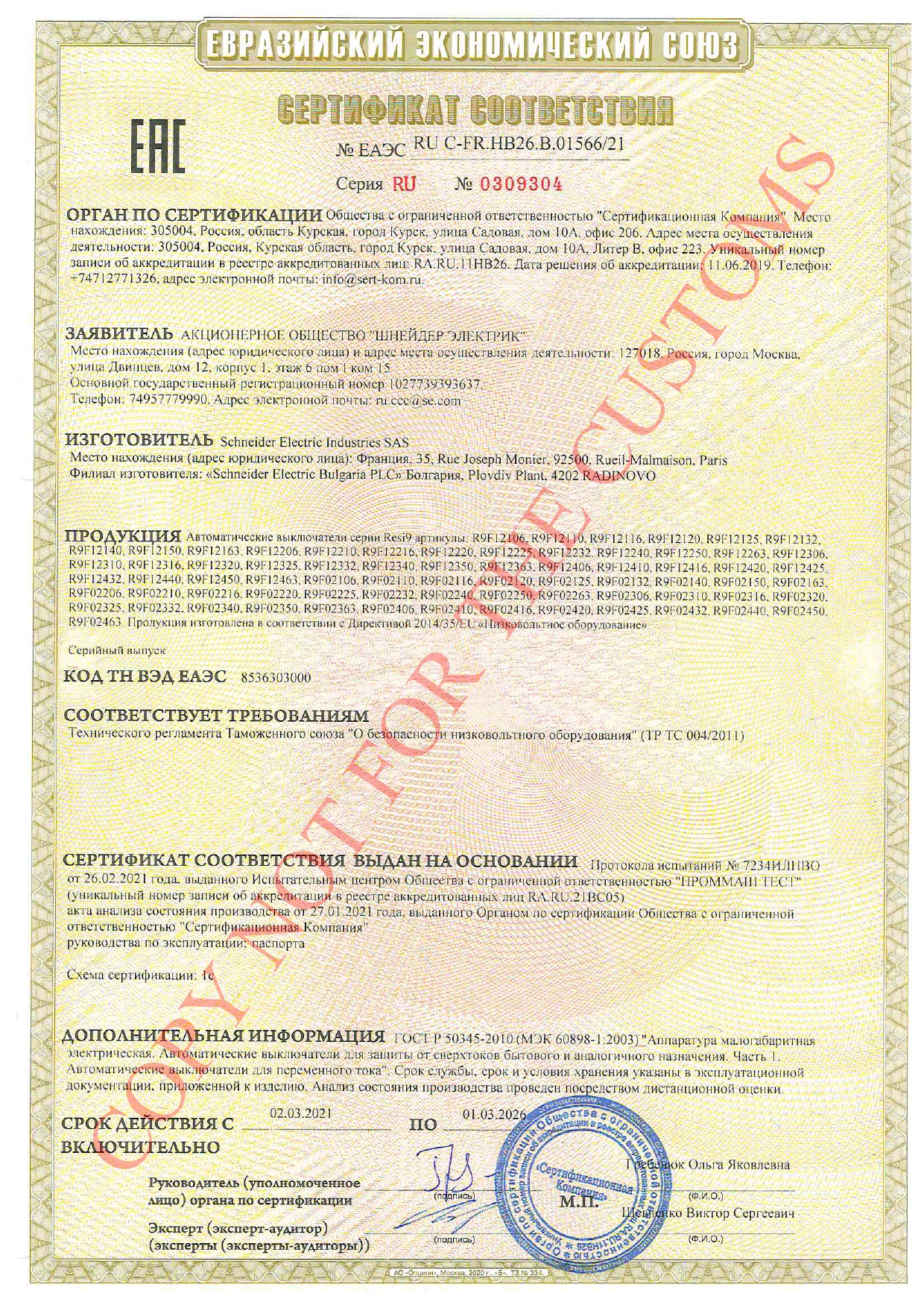 В ассортимент Resi9 входят выключатели с номинальным током от 6 до 63А. Отличительной особенностью АВ Resi9 является наличие кривых отключения B и C, которые позволяют применить их в самых разнообразных модификациях электрических щитков.