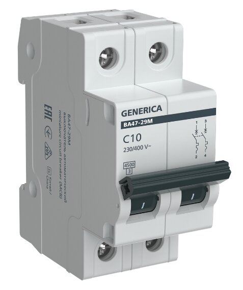 Автоматический выключатель ВА47-29М 2P 10А 4,5кА C GENERICA ИЭК