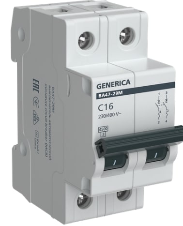 Автоматический выключатель ВА47-29М 2P 16А 4,5кА C GENERICA ИЭК