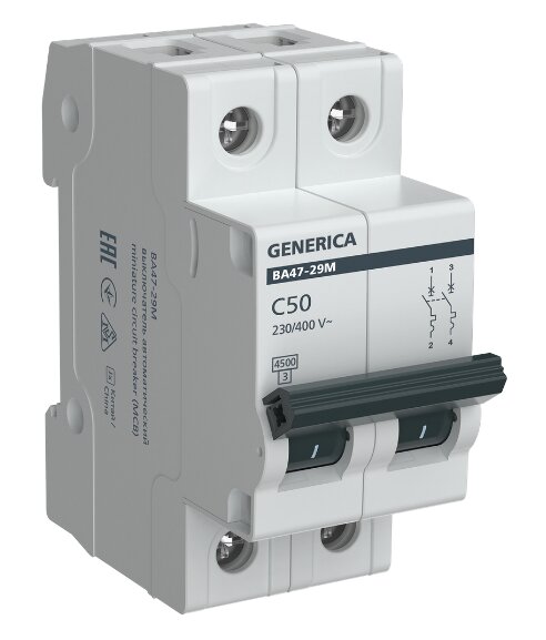 Автоматический выключатель ВА47-29М 2P 50А 4,5кА C GENERICA ИЭК