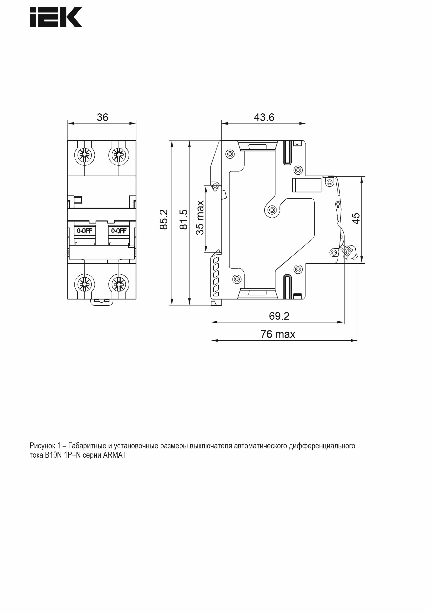 ARMAT Автоматический выключатель дифференциального тока B10N 1P+NP C20 30мА тип A (36мм) IEK