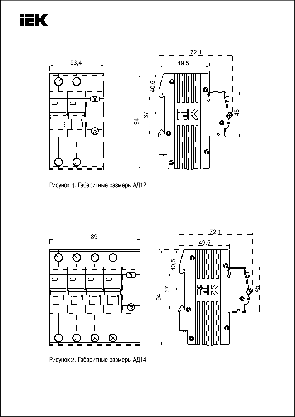 В изделиях предусмотрена индикация срабатывания от дифференциального тока, а для АД12М также светодиодная индикация включенного состояния. АД12М сохраняет работоспособность при снижении напряжения электрической сети до 110 В.
