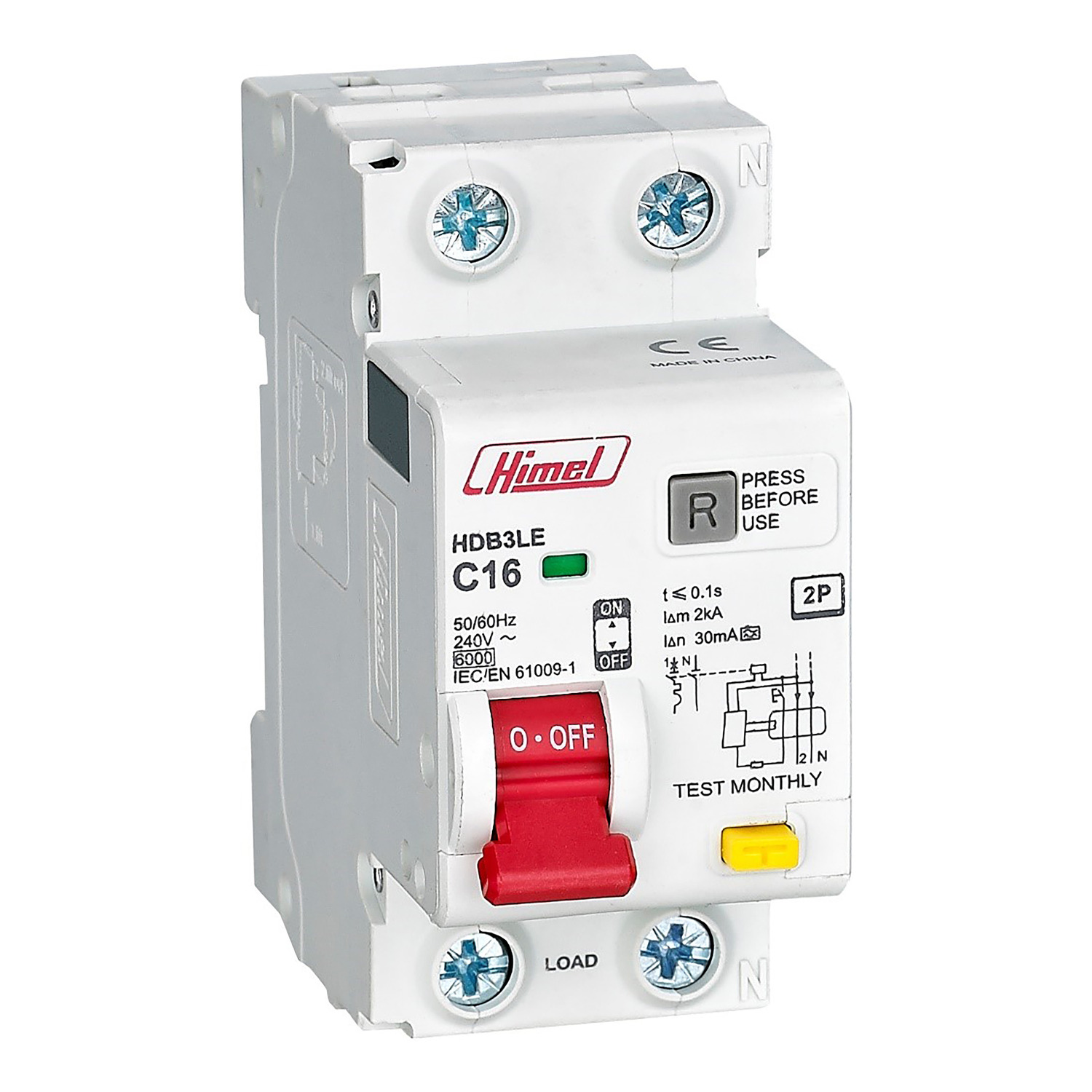 Автоматический выключатель дифференциального тока 2Р 16А 30мА AC С 240В Himel /HDB3LE2C16/