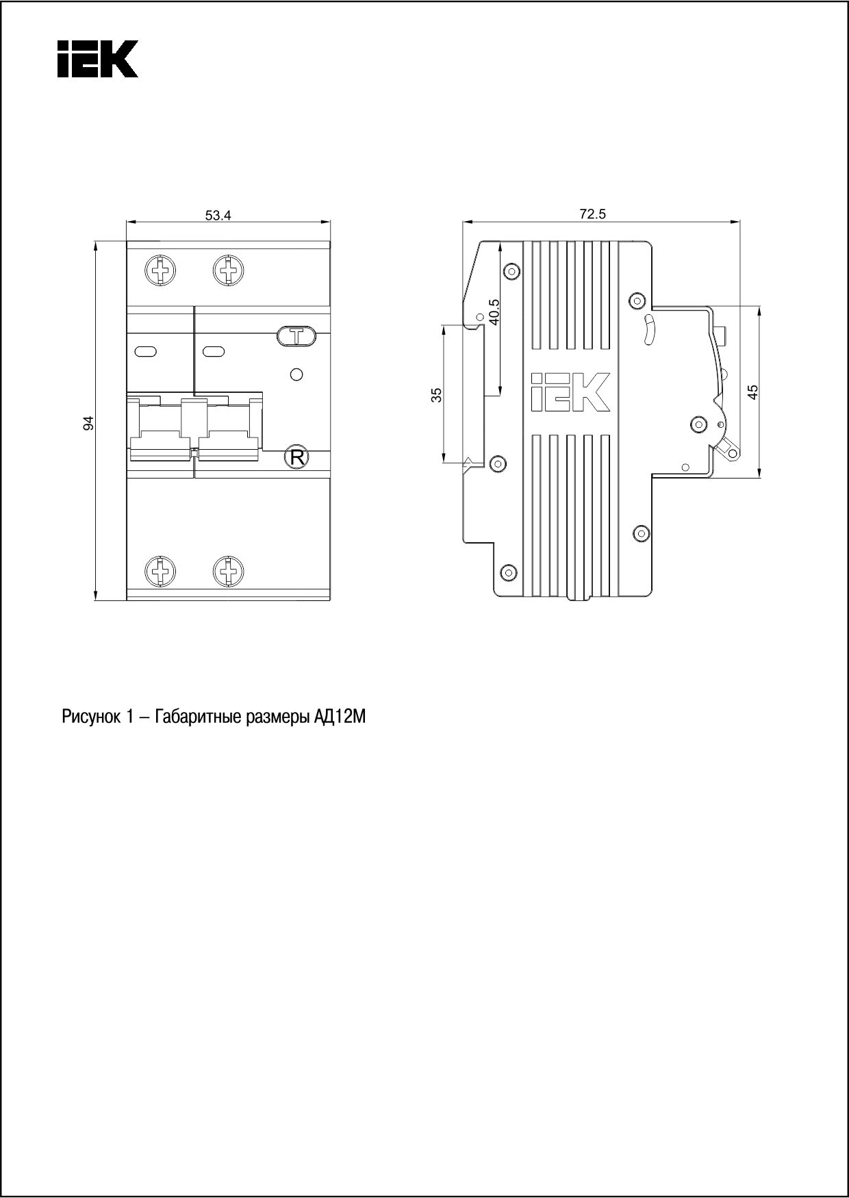 В изделиях предусмотрена индикация срабатывания от дифференциального тока, а для АД12М также светодиодная индикация включенного состояния. АД12М сохраняет работоспособность при снижении напряжения электрической сети до 110 В.
