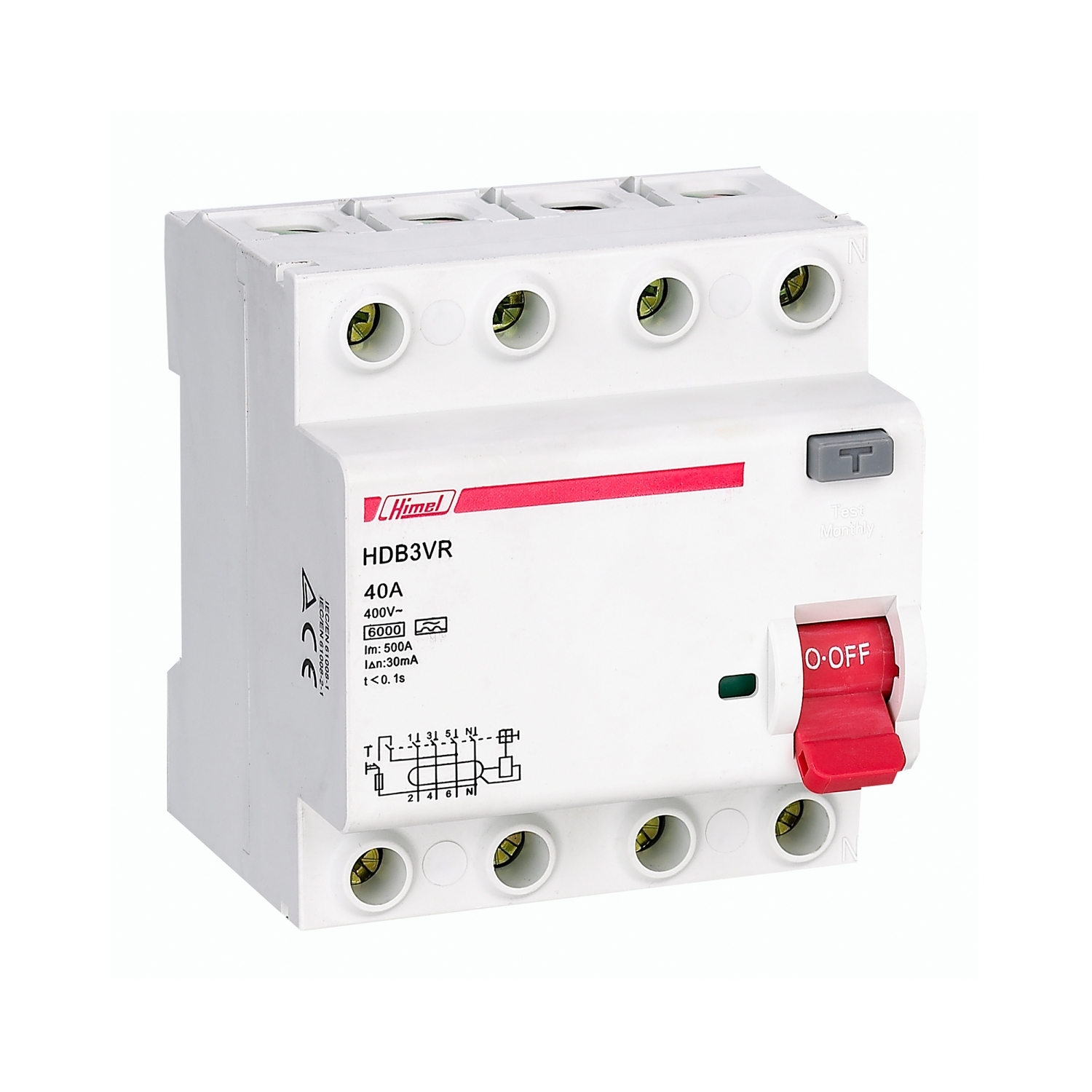 Выключатель дифференциального тока 4P 40А 30мА тип AC 6кА HDB3VR /HDB3VR440SC/
