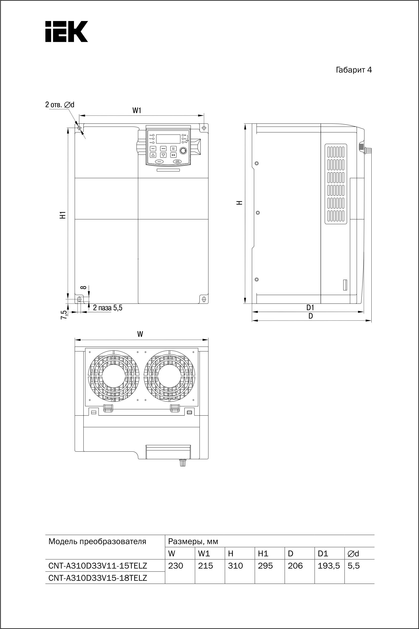Преобразователь частоты CONTROL-A310 380В 3Ф 15-18,5кВт 32-37A IEK