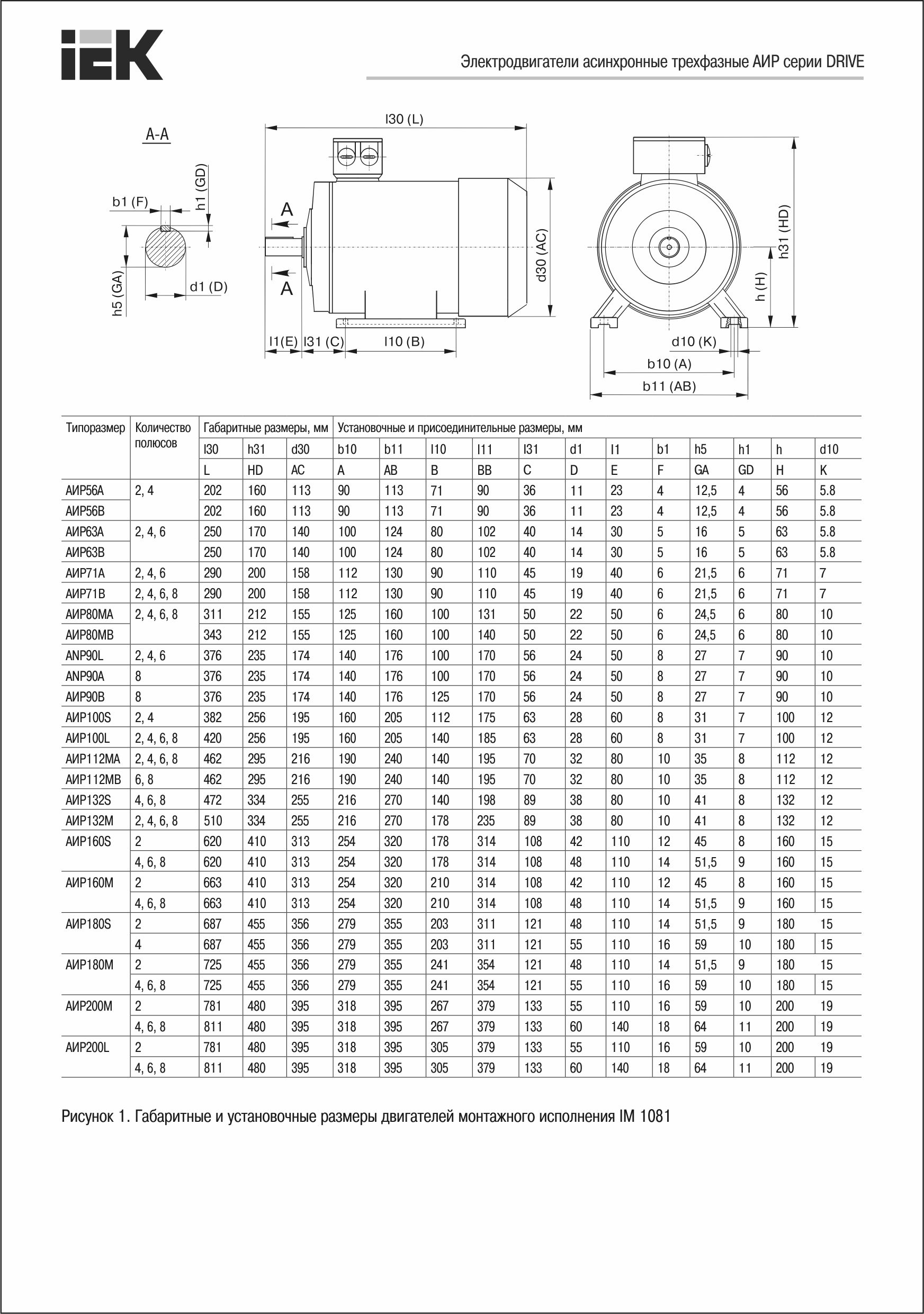 Электродвигатель асинхронный трехфазный АИР 132S4 660В 7,5кВт 1500об/мин 1081 DRIVE IEK