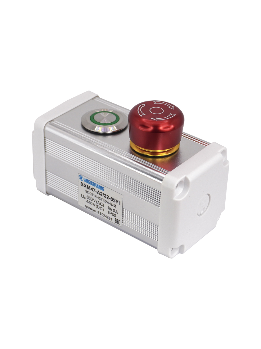 BXM47-A2/22-65У1 (1 зел. цилиндр. кнопка (1C1NO1NC) + 1 красн. гриб с фиксацией (1C1NO1NC)), пост управления (ЭТ)