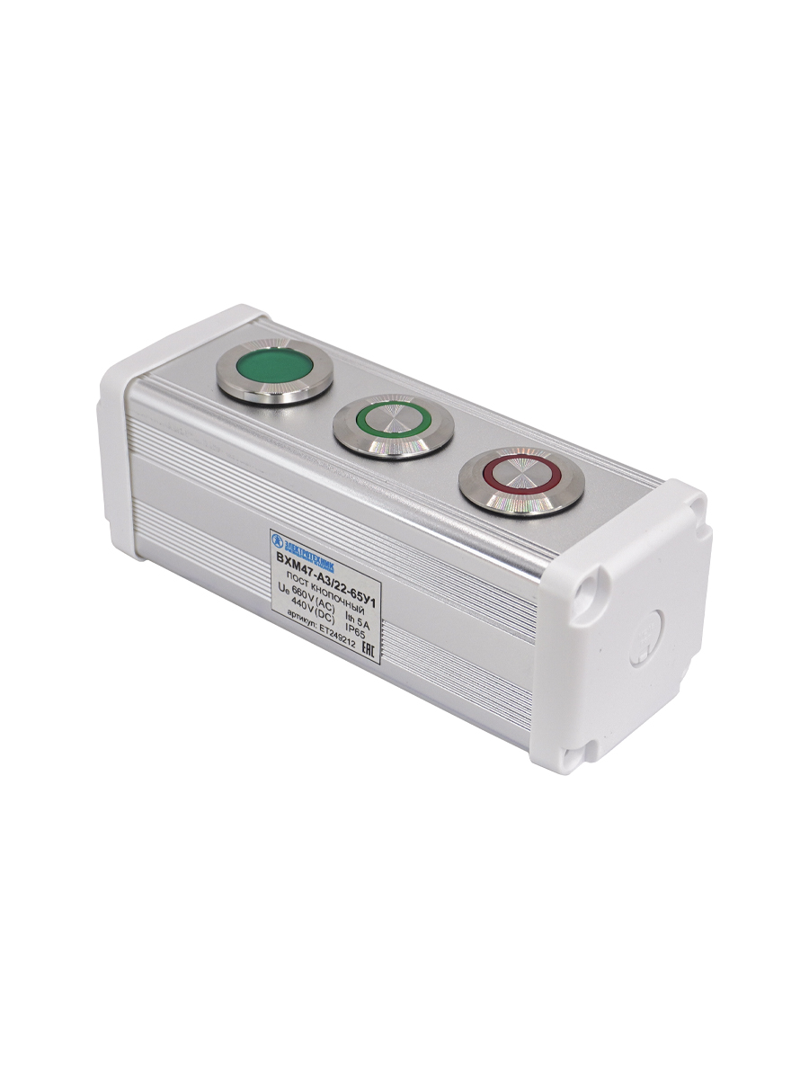 BXM47-A3/22-65У1 (1 зелёная лампа, 220В + 2 цилиндр. кнопки (зел. и красн.) (1C1NO1NC)) (ЭТ)