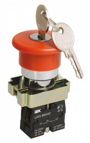 Кнопка LAY5-BS142 Грибок с ключом красная d22мм 240В 1р ИЭК