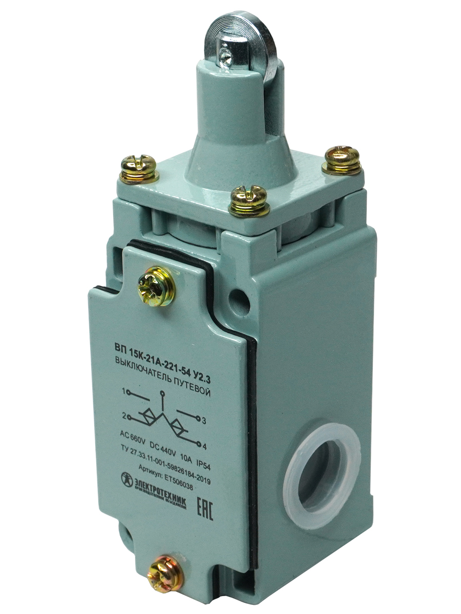 Толкатель с роликом, полумгновенный, IP54, выключатель путевой ВП 15К-21А-221-54 У2.3, (ЭТ)