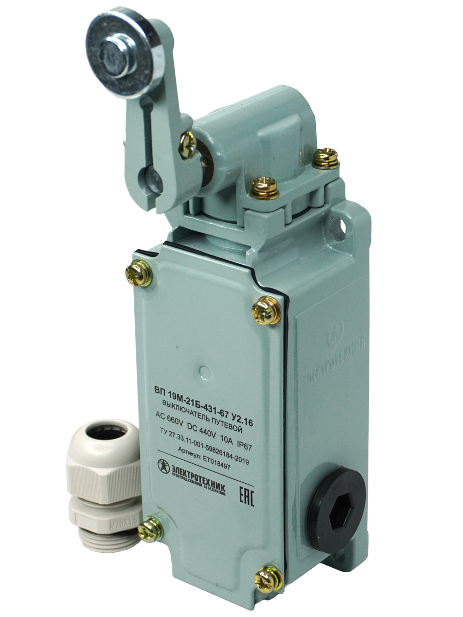 Выключатель путевой ВП 19М-21Б-431-67 У2.16, четырёхполюсный, рычаг с роликом, 2з+2р, IP67, (ЭТ) и другие товары категории Путевые и концевые выключатели доступны в каталоге интернет-магазина 220volt по цене 13 187.00 ₸. Товар может находиться на складах в Астане, Алматы, Караганде, Шымкенте или Актобе. Уточняйте наличие перед оформлением заказа.