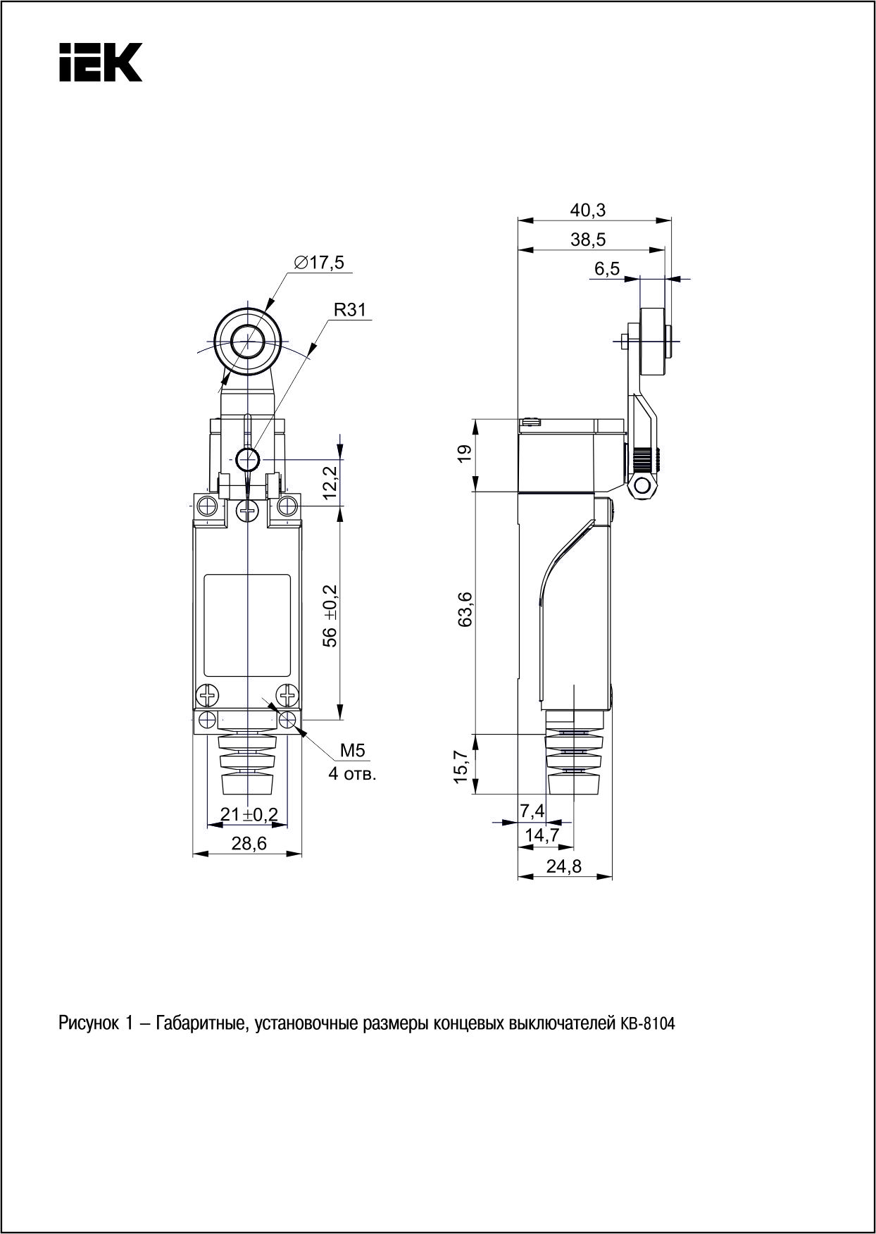 Выключатель концевой КВ-8104 рычаг с роликом IP65 IEK